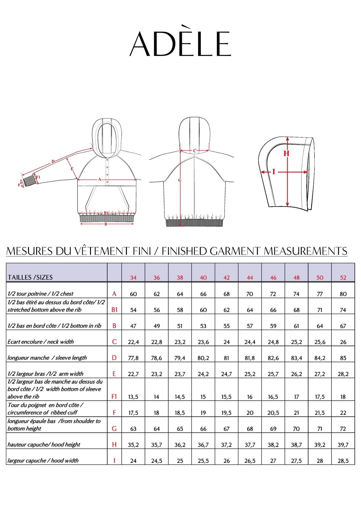 Technieken: knoopsluiting, kangoeroezak, manchetten met duimgat, gevoerde kap en werken met rekbare stoffen.