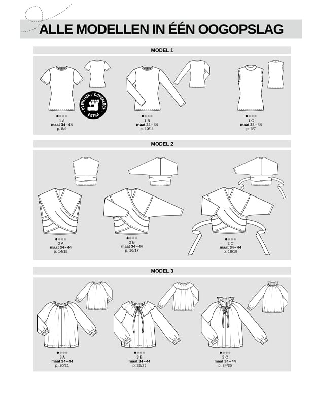 - Jouw cozy collectie : comfortabele broeken en wijde blouses, eenvoudig te naaien truien (die er als een designermodel uitzien) en onmisbare basics - van sweater tot tanktop)