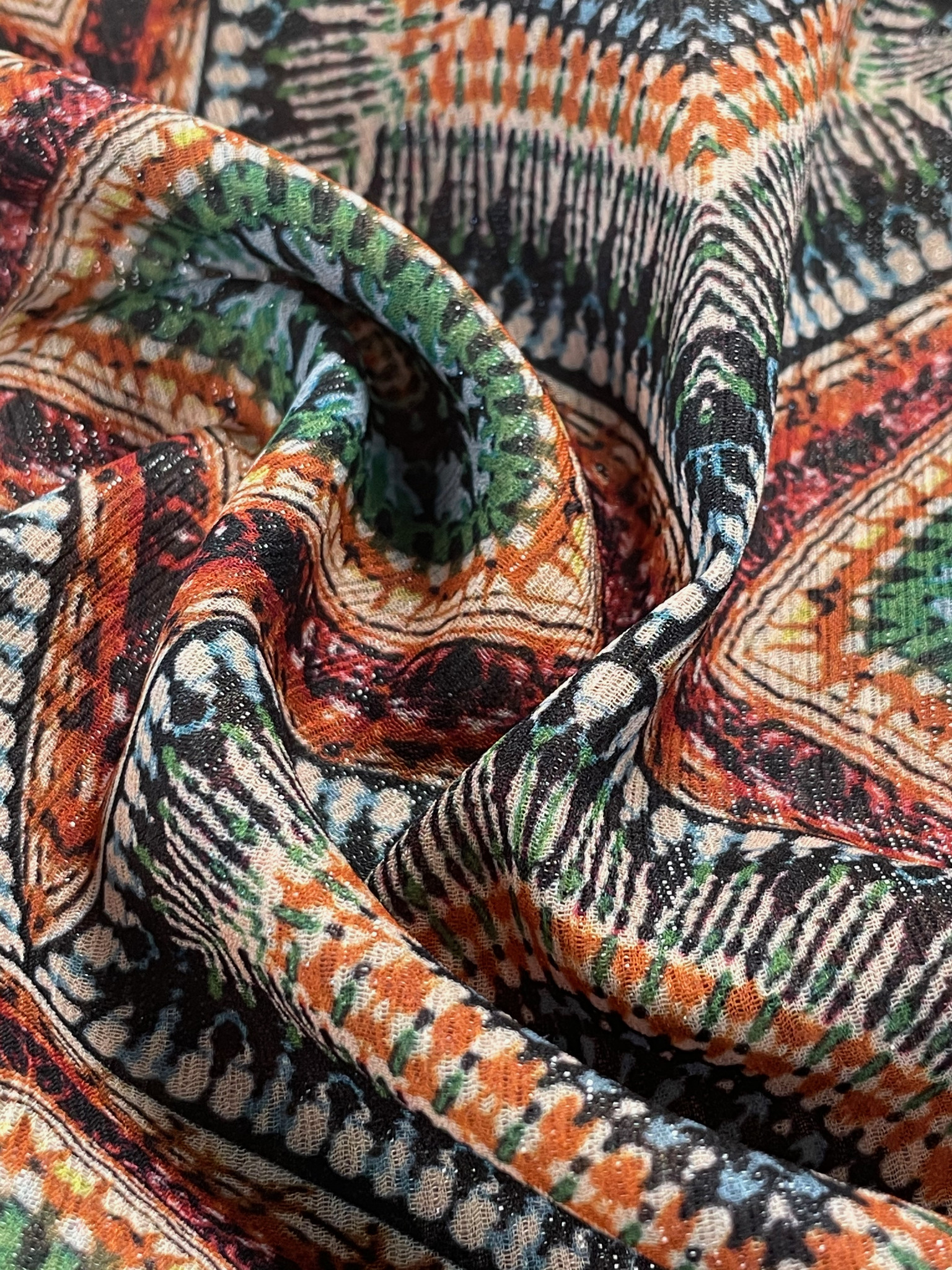 Een fijne, transparante voile-achtige stof met etnische print. Ideaal voor een zomerse jurk, rok of lichte blouse en top.