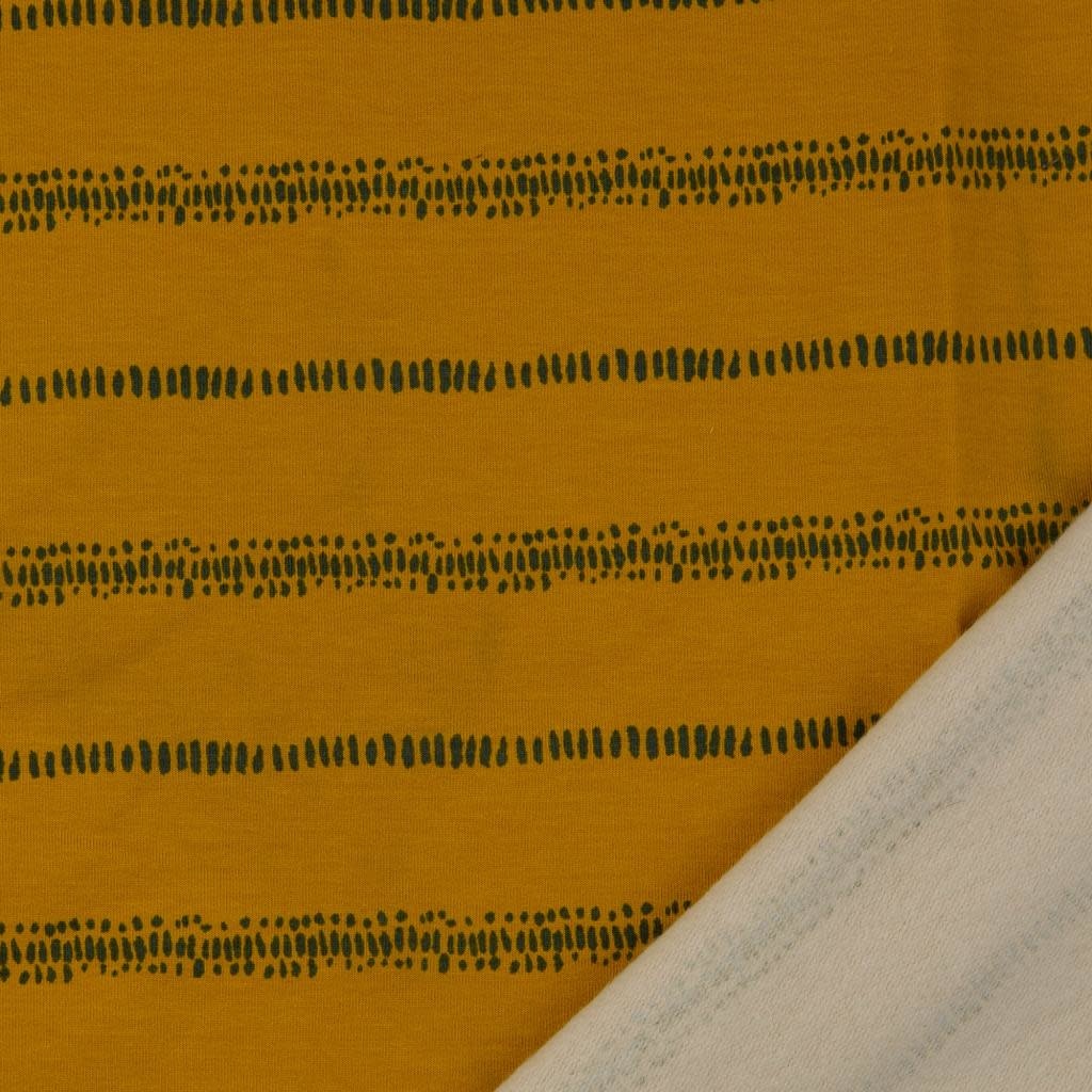 Een lichte sweater stof (french terry) met een gebrushte (=zachte) achterkant zodat hij heel aangenaam voelt op de huid.