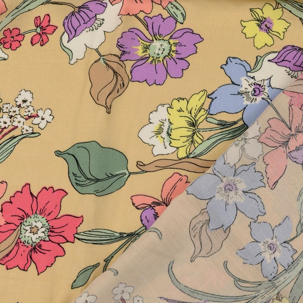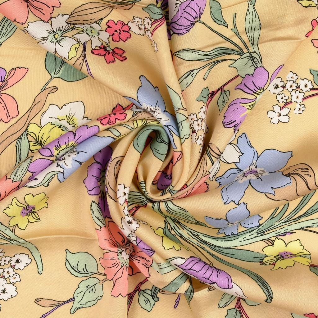 Gesatineerde stof in viscose met zachte bloemenprint. Ideaal als rok, jurk, blouse, losse broek, ...